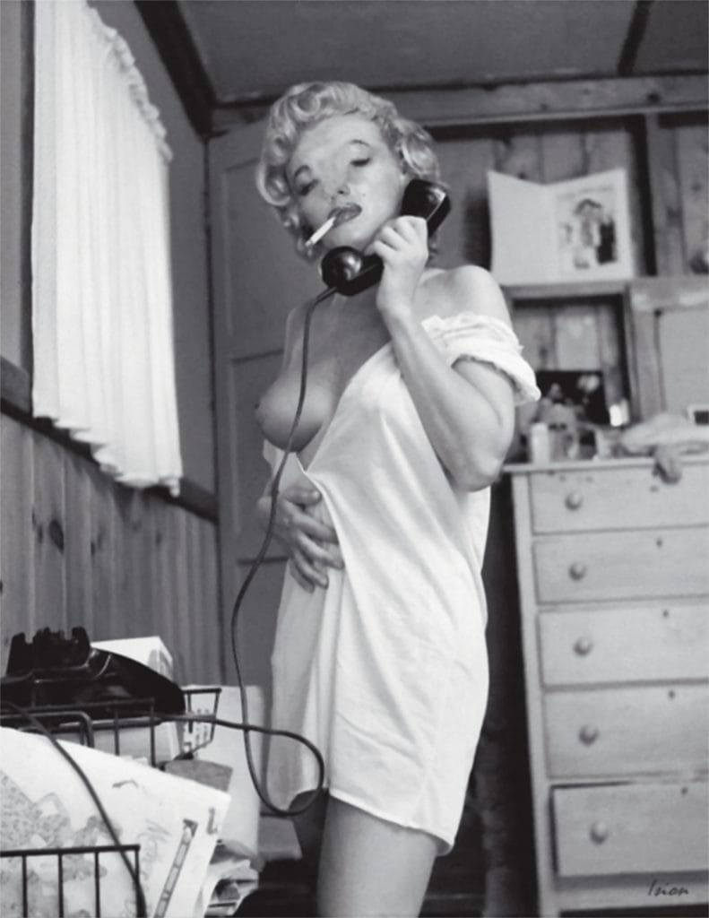 Un ejemplo de ello es la breve pero fascinante colección de Jeffrey Yarber, disponible en esta página (https://www. saatchiart.com/Ision) y en la cual podemos observar una decena de fotografías de Marilyn Monroe mostrando sus senos mientras yace acostada sobre una cama después del acto sexual (complacida, sensual y elegante como en muchas de las fantasías puñeteras de millones de hombres y mujeres), o en posiciones sugerentes pidiendo un poco de leche mientras sus piernas se abren al lente de una inexistente cámara.