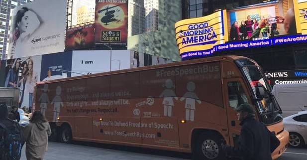 Desde el pasado miércoles el polémico vehículo que pertenece al grupo español CitizenGo (el cual aglomera agrupaciones como HazteOír.org), circula por la Gran Manzana con este mensaje en inglés: "Es biología: niños son niños… y siempre lo serán. Niñas son niñas… y siempre lo serán. No puedes cambiar el sexo. Respétalos". A su vez contiene el hashtag #FreeSpeechBus (autobús de la libertad de expresión).