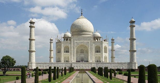 El Taj Mahal fue construido por el emperador Shah Jahan entre 1632 y 1654 para su esposa preferida, Mumtaz Mahal; en él descansan los restos de ambos y también hay una mezquita. Es uno de los monumentos más atractivos de India, está ubicado en la ciudad de Agra, en el norte del país, y cada año atrae a millones de visitantes.