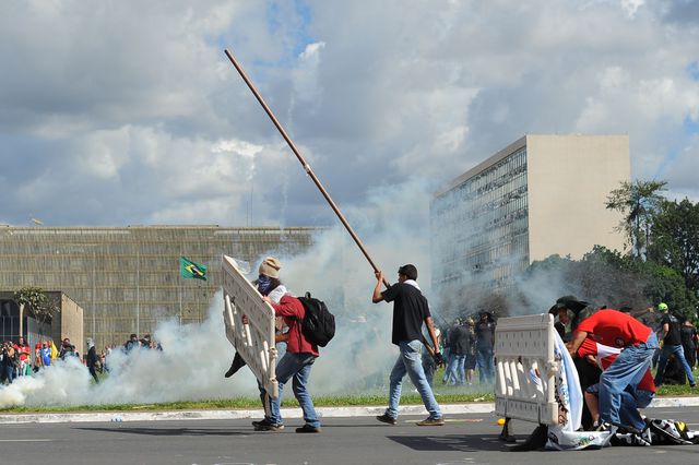 Ante el escenario violento que se registró esta tarde en Brasilia (capital), el gobierno ordenó desplegar tropas en esa ciudad para defender los edificios públicos atacados hoy por manifestantes encapuchados con piedras y palos. Incluso invadieron una sala del Ministerio de Agricultura, donde prendieron fuego.