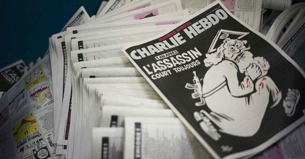 La edición de aniversario de la revista satírica entró rápidamente en polémica, como sus números anteriores, pues tan sólo la portada está ilustrada por un dios manchado de sangre con rifle en mano, acompañado de la leyenda: “Un año después, el asesino sigue suelto”, frase que hace referencia sobre cómo el fanatismo religioso es capaz de llevar a cualquier persona a cometer asesinatos, según lo expone el propio director del semanario Laurent Sourisseau, “Riss”, en el editorial.