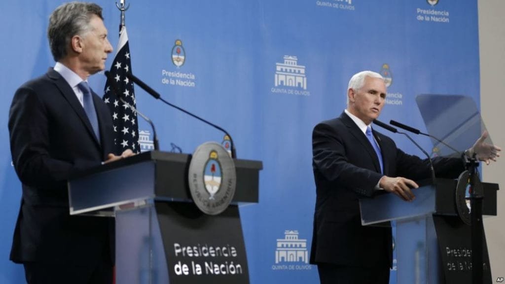Durante un mensaje a medios en el marco de su visita a Argentina y ante el presidente de aquel país, Mauricio Macri, el funcionario estadounidense, expresó su preocupación por el pueblo venezolano, “sometido al régimen de Nicolás Maduro, que ha socavado el orden democrático y la libertad de expresión”.