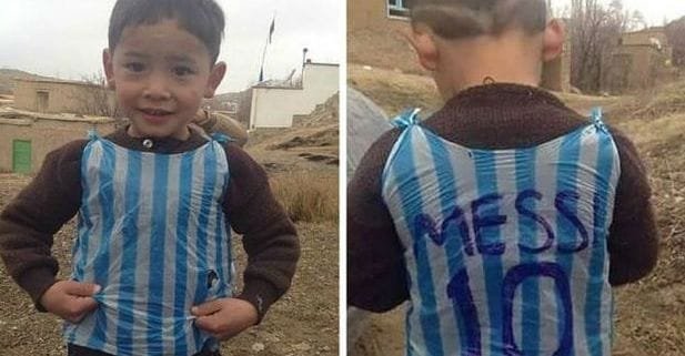 Murtaza es el pequeño de cinco años que se convirtió en una sensación en internet al hacerse viral una foto suya con una camiseta hecha de una bolsa de plástico azul y blanca, a la que le puso el nombre de Messi y el número 10 que lleva en la selección argentina.