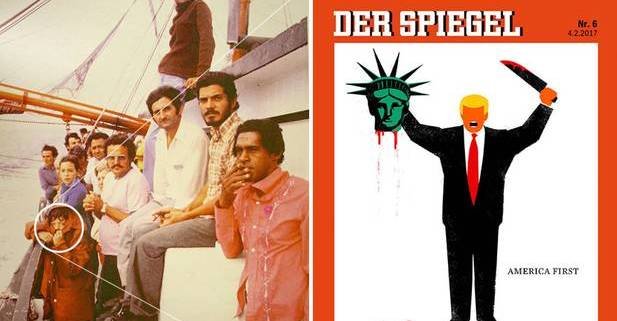 La portada del semanario alemán Der Spiegel con una caricatura de Donald Trump levantando eufórico la cabeza de la Estatua de la Libertad decapitada, una controvertida forma de aludir a sus ideas nacionalistas y contrarias a la inmigración, tiene detrás la historia íntima de un refugiado cubano. El autor, Edel Rodríguez, de 45 años, llegó a los ocho a EU a bordo de un barco durante el éxodo del Mariel, en 1980, que llevó a 125 mil isleños al país vecino.