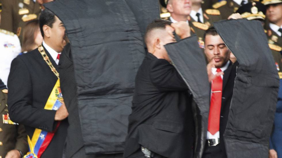 Nicolás Maduro ha aprovechado el atentado presuntamente perpetrado contra él el sábado durante un desfile militar en Caracas para endurecer el discurso contra sus adversarios. El mandatario acusó a Juan Manuel Santos, presidente saliente de Colombia, a supuestos conspiradores en EE UU y a la oposición venezolana de un intento de magnicidio sobre el que se ciernen muchas dudas. Según sus críticos, el régimen buscaba con el suceso desviar la atención de la profunda crisis que atraviesa el país. Maduro prometió ser implacable con los responsables “caiga quien caiga” y llegar hasta el fondo en la investigación.