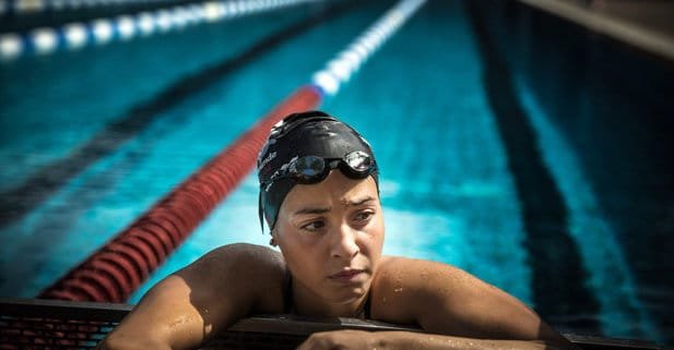 Yusra Mardini, una nadadora olímpica, llevaba una hora y media de su primera sesión de entrenamiento del día, dando patadas de mariposa a lo largo de la piscina con un patito amarillo de plástico equilibrado sobre su cabeza.