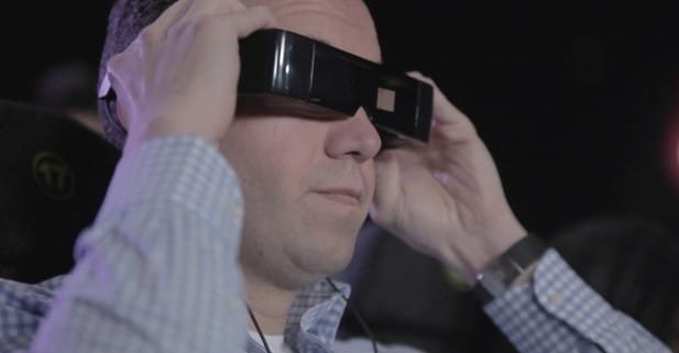 Whatscine fue desarrollado por la Universidad Carlos II de Madrid, funciona a través de unos lentes que se conectan a un teléfono inteligente o tableta y el usuario puede escuchar la autodescripción de lo que sucede en la pantalla, sin interferir en el resto del audio de los demás espectadores.
