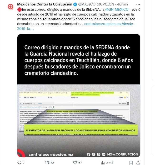 A pesar de que a lo largo de todo el pasado sexenio los llamados de los colectivos de buscadores fueron reiterados y sus denuncias sobre fosas clandestinas eran frecuentes, nadie en el gobierno de AMLO atendió el llamado. Pero no solo eso, sino que existe información fehaciente de que la Defensa tenía conocimiento de lo que ocurría en Techiutlán y no impidió las atrocidades del Cartel Jalisco Nueva Generación.