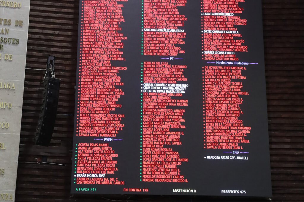 En su sesión de este miércoles, tras más de seis horas de discusión en la que se desechó una moción suspensiva para interrumpir la discusión del dictamen, la coalición gobiernista logró imponerse ampliamente y alcanzó la mayoría calificada necesaria para realizar la reforma constitucional que desaparece siete órganos autónomos: en lo general a favor fueron 347 votos, 128 en contra y ninguna abstención.
