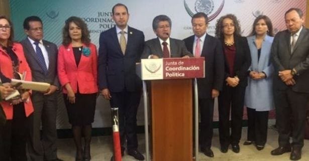 En la conferencia estuvieron presentes los coordinadores del PRI, César Camacho; del PAN, Marko Cortés Mendoza; de Morena, Rocío Nahle García, y el vicecoordinador del PRD, Jesús Zambrano Grijalva. También acudieron, las diputadas Sharon Cuenca Ayala, en representación del PVEM, y Claudia Corichi García, por parte de MC.