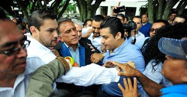 Integrantes de los 400 pueblos atacan a Yunes, Anaya y Creel afuera del Congreso de Veracruz