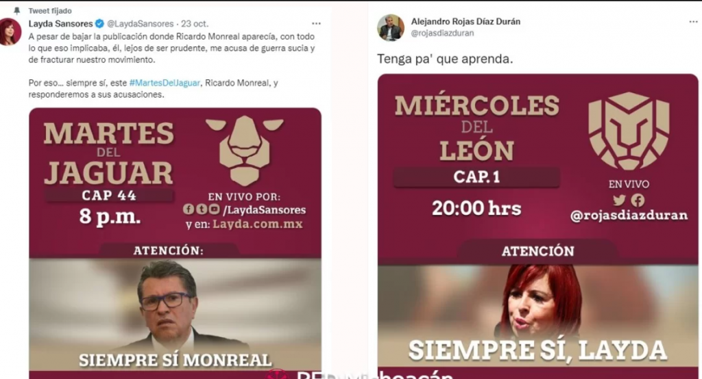 Luego de que Sansores difundiese supuestas conversaciones en Whatsapp entre Ricardo Monreal y Alejandro Moreno, en su programa Martes del Jaguar, Rojas Durán emitió lo que llamó “Miércoles del León” y exhibió fotos de inmuebles y una lista de propiedades que, aseguró, fueron adquiridas por la gobernadora pagando en efectivo.