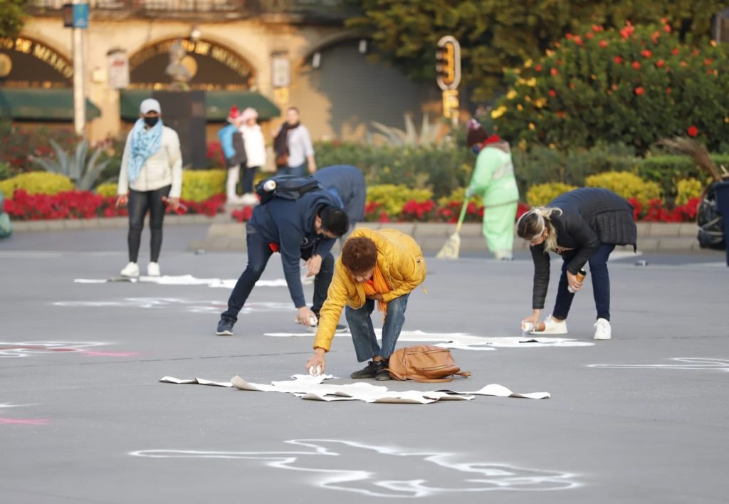 Desde las 5 de la mañana se inició la pinta de siluetas en Zócalo en memoria de todas las mujeres que mueren a diario.