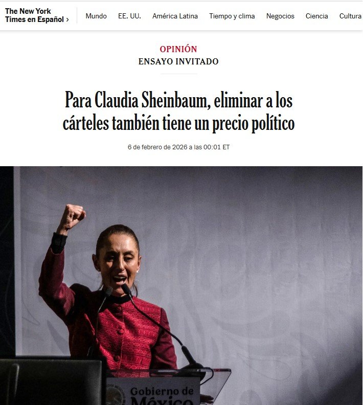 Según el texto de Mary Beth Sheridan, Sheinbaum no puede desmantelar los carteles porque sabe que el país entraría en caos y su “supervivencia política” estaría en juego.