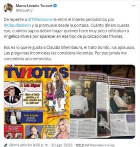 Tras aquella publicación, el director de Etcétera, Marco Levario Turcott cuestionó el interés repentino de TV Notas en temas electorales, así como el silencio de los defensores de la llamada 4T, que tanto criticaron a Angélica Rivera por aparecer en esas publicaciones siendo esposa del expresidente Enrique Peña Nieto.