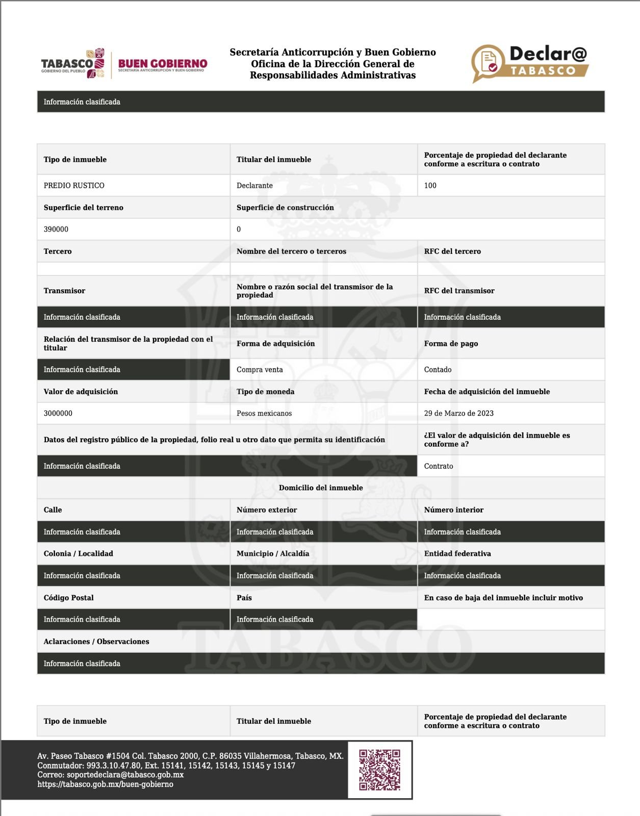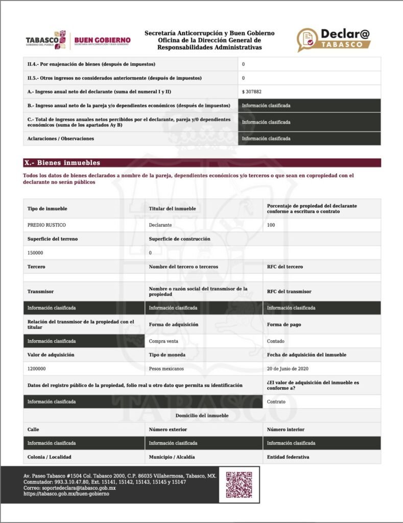 Explicó entonces que el secretario de Gobierno de Tabasco, José Ramiro López Obrador, por ejemplo, es propietario de 13 ranchos con una extensión de alrededor de 600 hectáreas y que ocho de esas propiedades, las adquirió entre 2018 y 2024, justo en el transcurso del sexenio de su hermano Andrés Manuel.