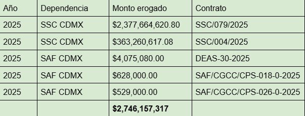 El gobierno de Clara Brugada, iniciado en octubre de 2024, ha tenido ya cinco contratos con empresas de Grupo Andrade. Tres en materia vehicular y dos de tipo mediático. El asombroso total, del primer año de gobierno, es de 2 mil 746 millones 157 mil 317 pesos.