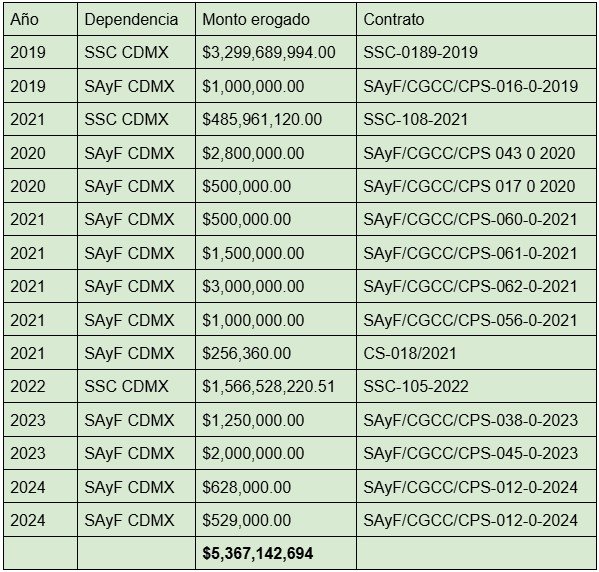El favoritismo hacia las empresas de este grupo también se nota a nivel federal, pues, por ejemplo, este 2025 se llevó un contrato con el IMSS de más de 470 millones de pesos.