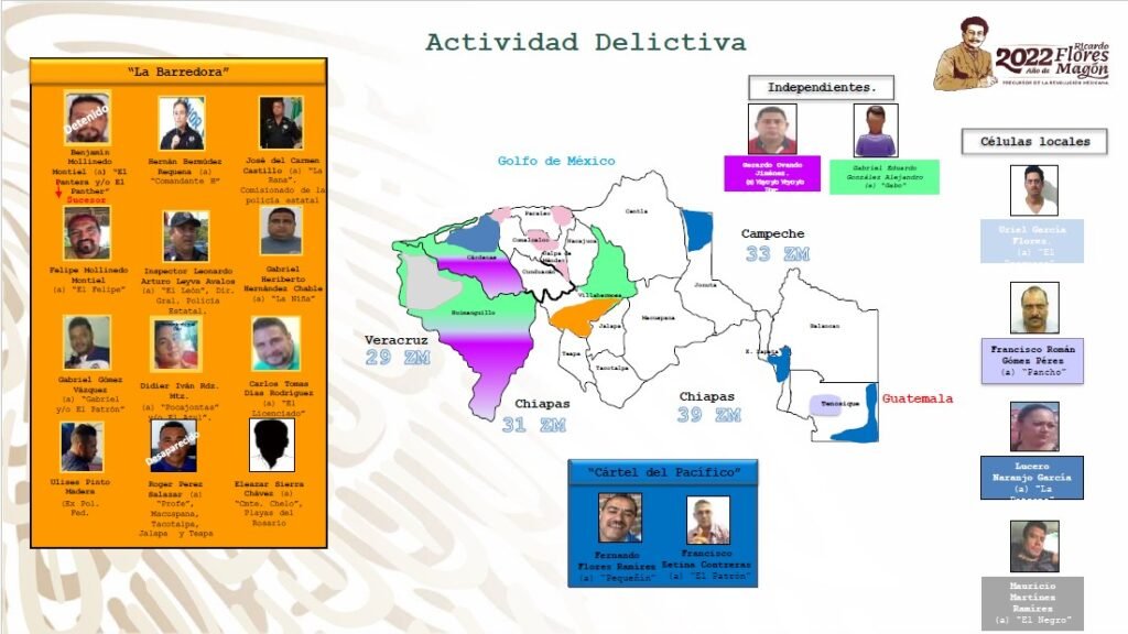 Como puede verse en la imagen de abajo, el mapa de la actividad delictiva de Tabasco realizado por la Sedena y fechado en 2022 ya ubicaba la existencia de La Barredora y ubicaba perfectamente a Bermúdez Requena –con su alias “Comandante H”– en la cúspide de la estructura de mando. Incluso se informaba que otro de los integrantes, Benjamín Mollinedo, ya había sido detenido.