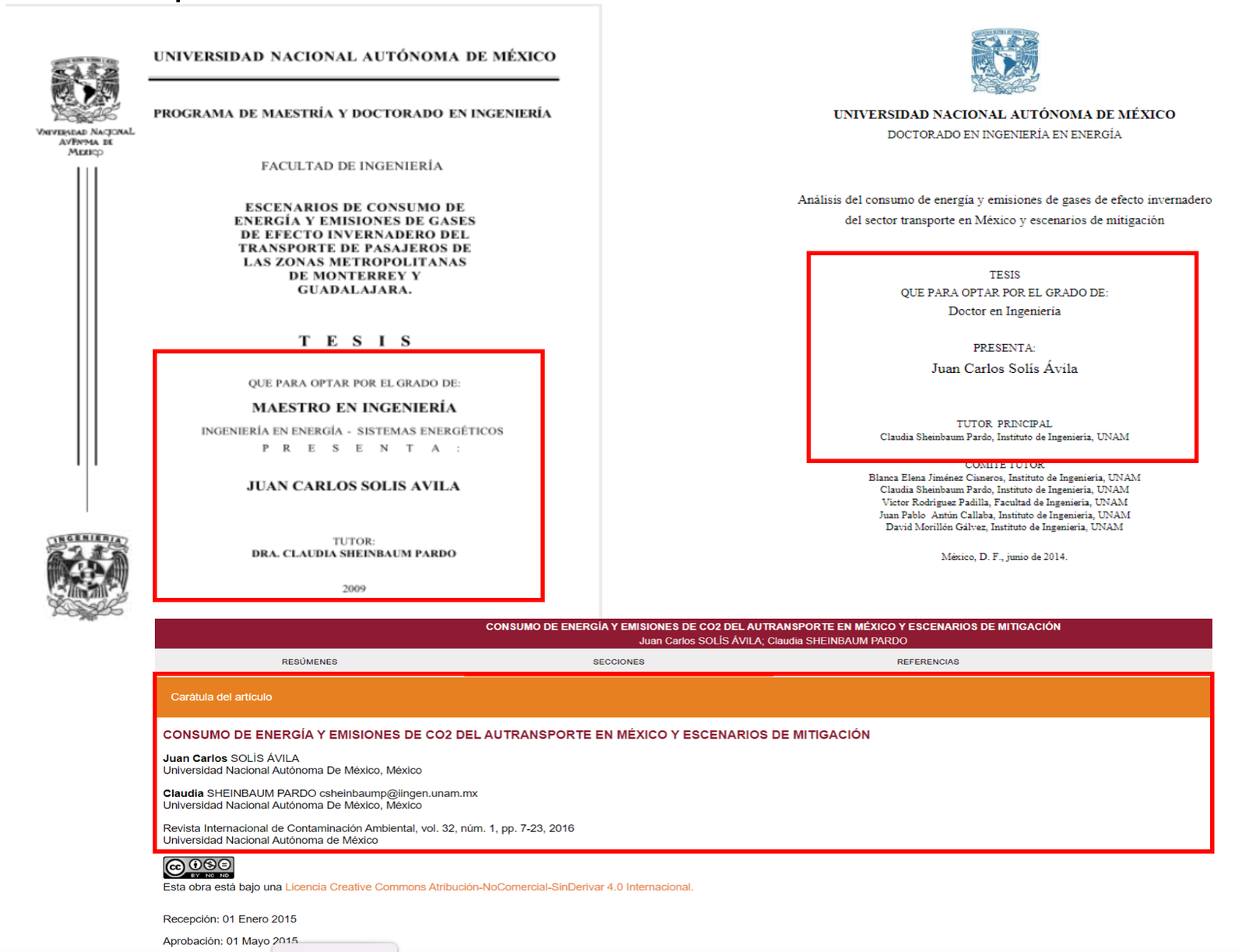Esta tesis se convirtió después en el artículo Consumo De Energía y Emisiones de Co2 del Autotransporte en México y Escenarios de Mitigación firmado por los dos y publicado en 2016 en la Revista Internacional de Contaminación Ambiental volumen 32, número 1.