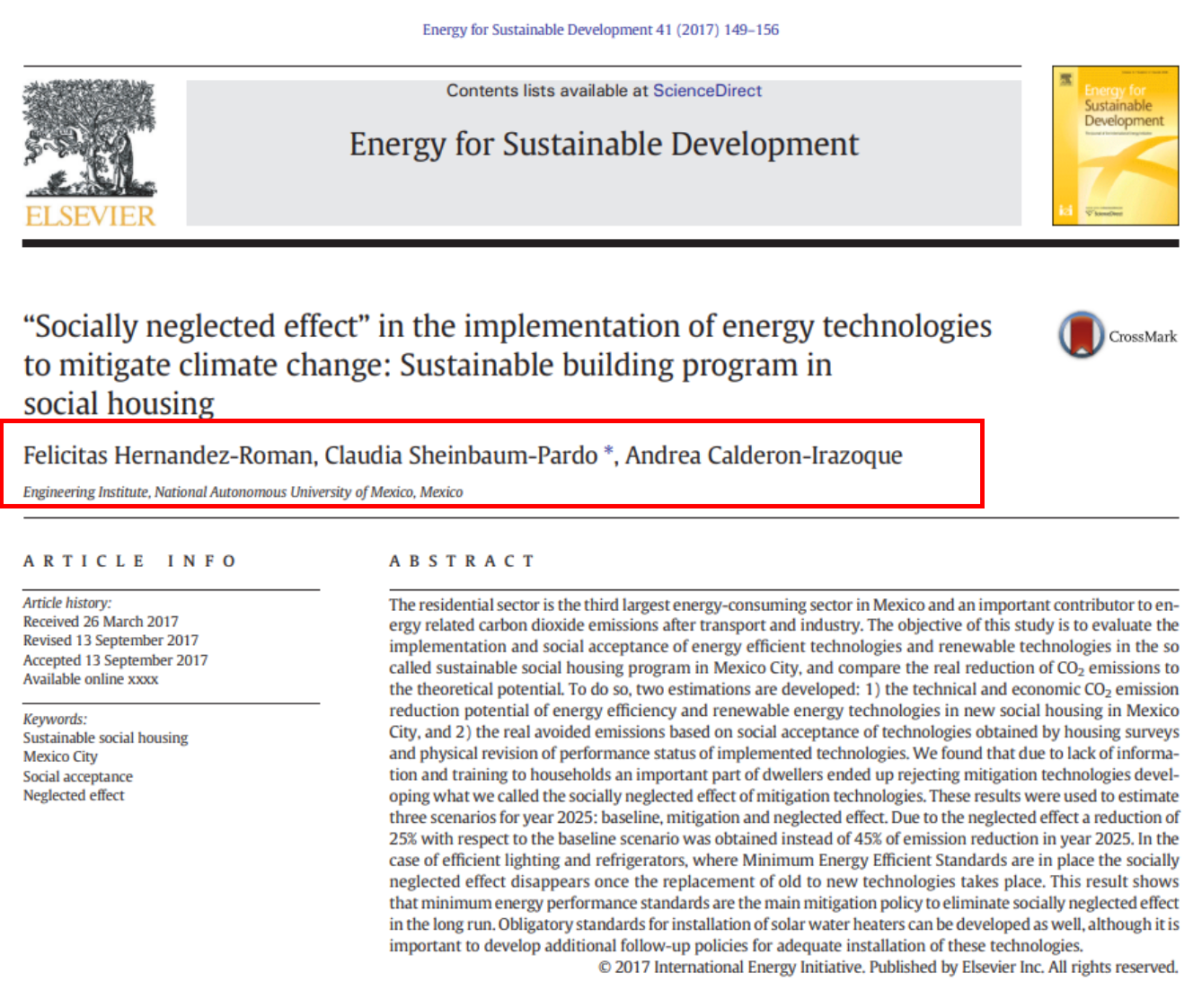 2.- En 2017, Socially neglected effect in the implementation of energy technologies to mitigate climate change: sustainable building program in social housing.