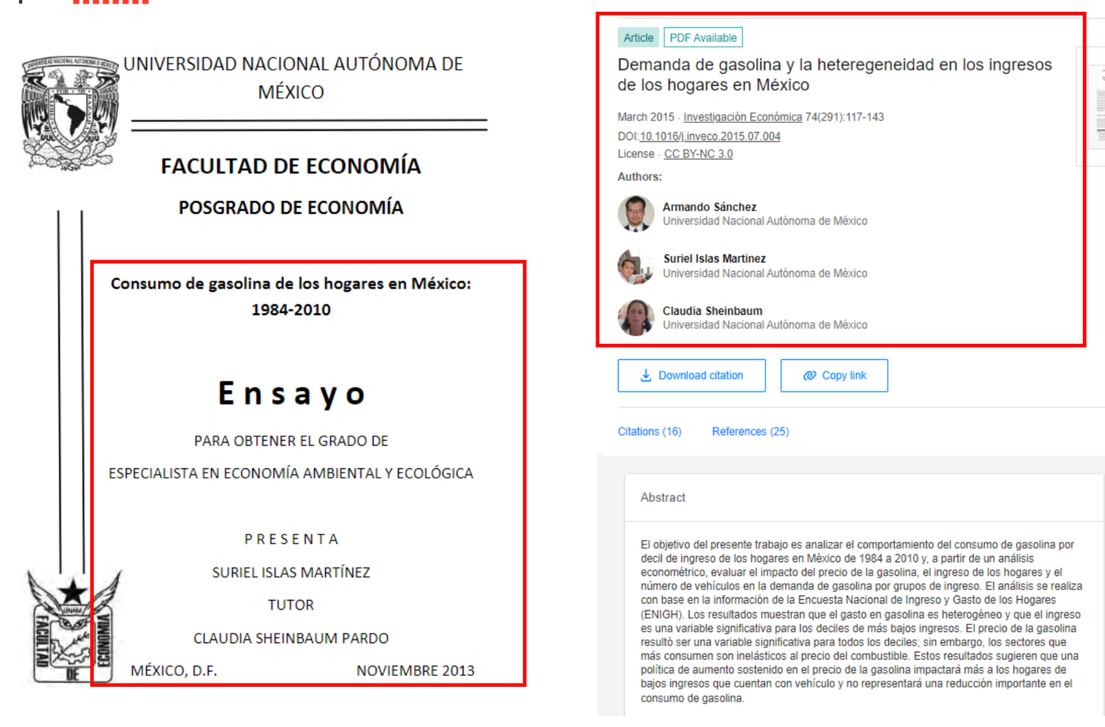 A partir de esta tesis, Claudia Sheinbaum “escribió” otro artículo en coautoría con Suriel Islas y Armando Sánchez, economista de la UNAM: Demanda de Gasolina y la heteregeneidad de los ingresos de los hogares en México.