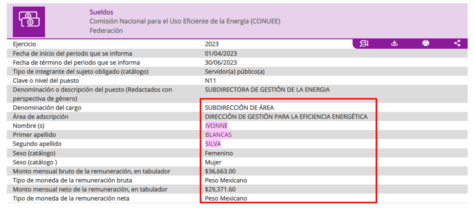 Actualmente, Blancas Silva se desempeña como subdirectora de la Dirección de Gestión para la Eficiencia Energética en la Comisión Nacional para el Uso Eficiente de la Energía, órgano desconcentrado de la Secretaría de Energía. Su salario es de 36 mil pesos al mes.