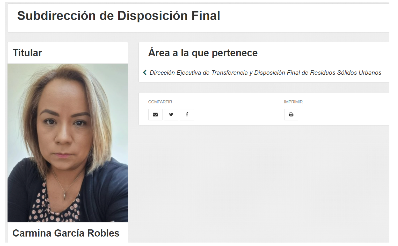 Es subdirectora de Disposición Final de la dirección Ejecutiva de Transferencia y Disposición Final de Residuos Urbanos de la Secretaría de Servicios Urbanos.