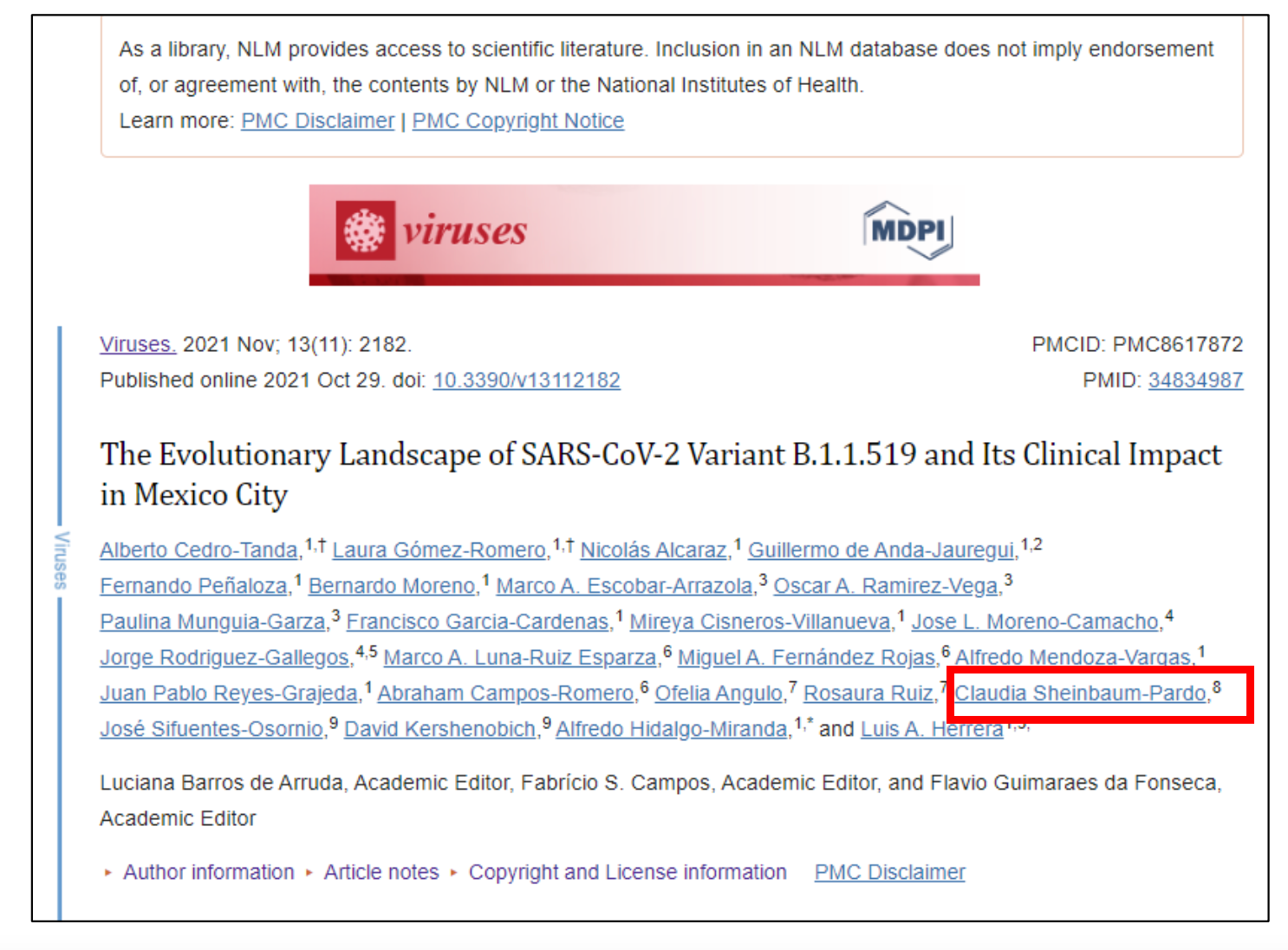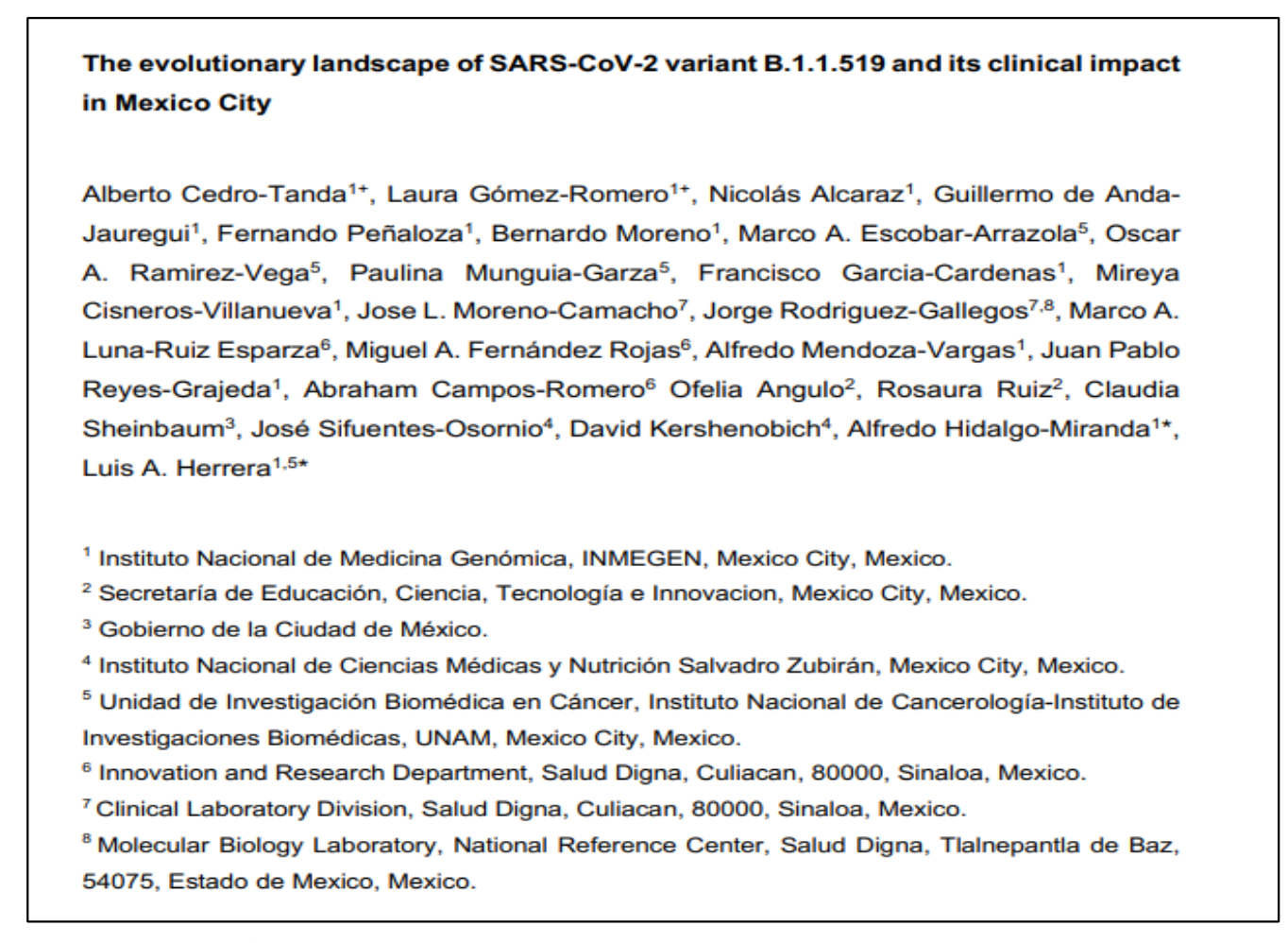 Se trata del artículo The Evolutionary Landscape of SARS-CoV-2 Variant B.1.1.519 and Its Clinical Impact in Mexico City (El panorama evolutivo de la variante B.1.1.519 del SARS-CoV-2 y su impacto clínico en la Ciudad de México), publicado por la revista