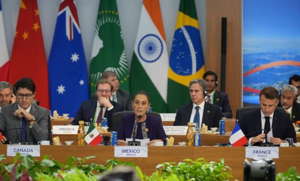 La presidenta Claudia Sheinbaum hizo prácticamente un “remake” de una mañanera durante su intervención en la Cumbre de Líderes del Grupo de los Veinte, realizada este lunes en Brasil. Ahí, propuso convertir el fracasado programa “Sembrando Vida” en programa mundial y dijo que la 4T ha fortalecido el sistema de salud mexicano, entre otras mentiras.