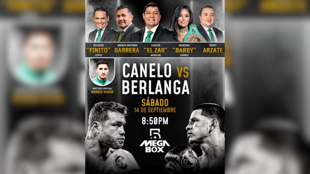 Este sábado 14 de septiembre, TelevisaUnivision, a través de Canal 5 tendrá la más completa cobertura para México de la pelea entre Saúl “Canelo” Álvarez y Edgar Berlanga, batalla en la que estarán en disputa los cinturones mundiales de peso supermediano del CMB, la OMB y la AMB.