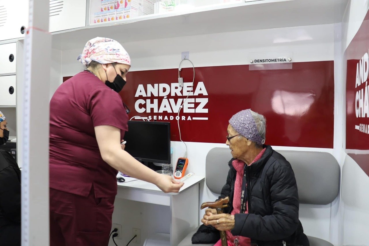 “La senadora de Morena, Andrea Chávez, ha intensificado su presencia y promoción en Chihuahua, estado que tendrá elecciones para gobernador en 2027. Ha colocado anuncios espectaculares en calles de Ciudad Juárez, tiene una campaña de publicidad en redes sociales que tan solo en dos meses, enero y febrero de 2025, costó más de 250 mil pesos. Pero lo que está en el centro de su estrategia es la operación de unidades médicas móviles. Camiones decorados con su propaganda que llevan atención gratuita de salud.