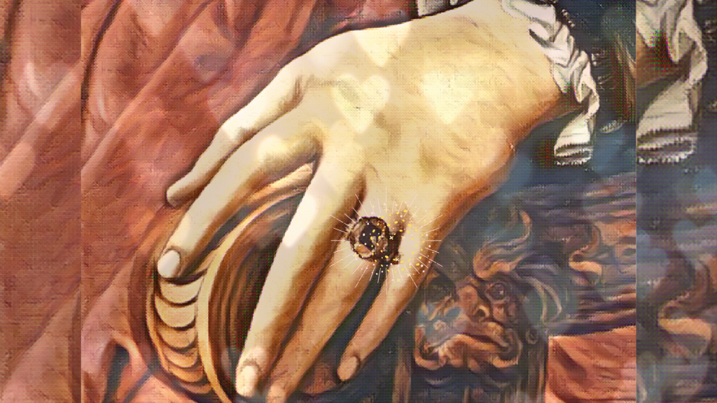 Se sabe que fue hasta la Edad Media que los anillos de compromiso fueron aderezados con gemas. Finalmente, la aristocracia coronó al diamante como piedra oficial. Fue también a la mediana edad de Leonor que Arnufo tuvo problemas financieros y empeñó y perdió el gracioso anillo. Así se fueron perdiendo muchas otras cosa y él pensó, cuando le pegó a un buen negocio que comprar un nuevo anillo devolvería el brillo a la pareja. No sucedió, aunque el anillo fuera incluso más grande que el original.
