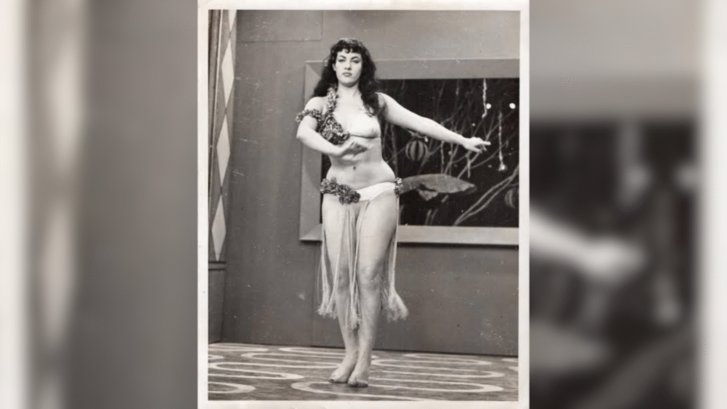 Grifell grabó la película a los 83 años (ya había alternado con Mapy Cortés y Pedro Infante, entre otros inmensos actores). Imagino el rubor que ocasionaron sus chistes juveniles, dichos con esa dicción que la misma María Guerrero envidió. La imagino graciosa en tinta sepia en “Las tres Gracias” junto a Esperanza Iris y María Conesa, “La Gatita”. Qué le iba a asustar la fiesta nocturna si ella fue tiple y promotora de espectáculos. Por eso al mirar a Eda estaba contemplando su propia creación. Su arte es el antecedente de exóticas y rumberas que, desde la segunda mitad de los 30 hasta finales de los 50, saltaron al cinematógrafo y los cabarets. Si Venus nació del mar, ellas surgieron de la carpa y el teatro. Grifell lo vivió, así como viajó en carruajes y luego en automotores. A Lorna la conoció cuando era animadora del Follies Bergere y luego estrella del teatro Esperanza Iris.