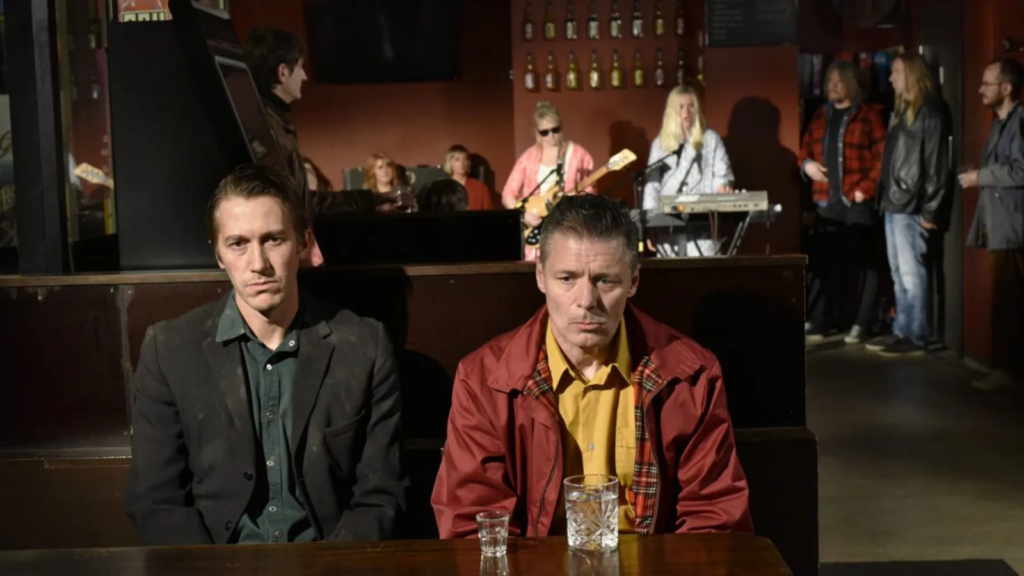 En Finlandia, país con estado de derecho y por tanto con ciudadanos que tienden a seguir las normas, Holappa fuma justo frente a un letrero que lo prohíbe. Ansa se pone en posición de tener que decir que es hermana de Holappa, para agregar que lo sería “en la fe”, cuando revela no conocer su nombre. Después, por recomendación médica, ella lee en voz alta para él —que se encuentra en coma— escogiendo al azar un artículo con el encabezado: “Un abogado se comió a su novia”. En otro momento, Holappa describe la serie de novelas Histeria ártica (1967-1968), de Marko Tapio, como “cuentos para niños”. Hasta las referencias cinematográficas se vuelven gesto humorístico en Hojas de otoño: quienes salen de un cine comparan lo apenas visto con Bresson y Godard moviendo a risa —pues lo mostrado en pantalla parece absurda cinta de zombis, aunque sea Los muertos no mueren (2019) de Jarmusch— y, al final, descubrimos que el perro de Ansa se llama Chaplin. El director pone de cabeza, o al menos agita un poco, sus materiales.