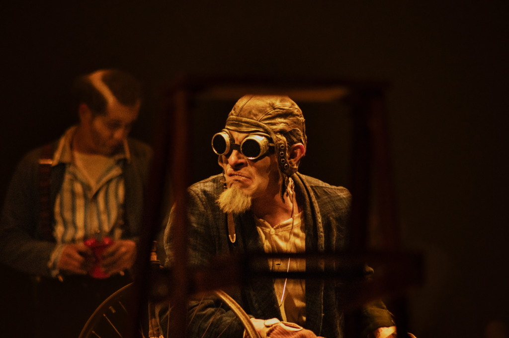 Una manera más de hacer notar la calidad de esta representación y de su adaptación imperceptible está en el contraste con un Fin de partida que tuve oportunidad de ver en Londres al principio de 2020 entre la multiplicación de noticias sobre un coronavirus que pocos días después paralizaría al mundo. El papel de Clov lo desempeñaba Daniel Radcliffe, estrella cinematográfica mundial por protagonizar las películas de Harry Potter (2001-2011). Su estatus era demasiado palpable para no distraer a la mayoría del público que llenaba hasta el último asiento en cada función del teatro Old Vic. La ropa de los actores era casi realista, en particular la de Radcliffe apenas moderadamente anticuada. La juventud y cuerpo atlético de Radcliffe no contribuían al personaje en un espacio demasiado abierto que no creaba sentido de vacío. En contraste, en la versión de El Ghetto el pequeño escenario y decisiones de detalle en los movimientos sugerían un espacio subterráneo opresivo. El vestuario de los personajes —también responsabilidad de Meza— era anacrónico y deslocalizado, sin caer en ridículo forzado, pues creaba personajes concretos. Los actores no se opacaban entre sí: se complementaban al seguir el texto y afirmar que “todo el universo”, como su casa, “huele a cadáver” o al descubrir que, si alguien llora, “entonces vive”. Así los personajes cumplían —independientemente de su condición física— como engranes a punto de quebrarse en la sonriente maquinaría de la tortura de vivir.